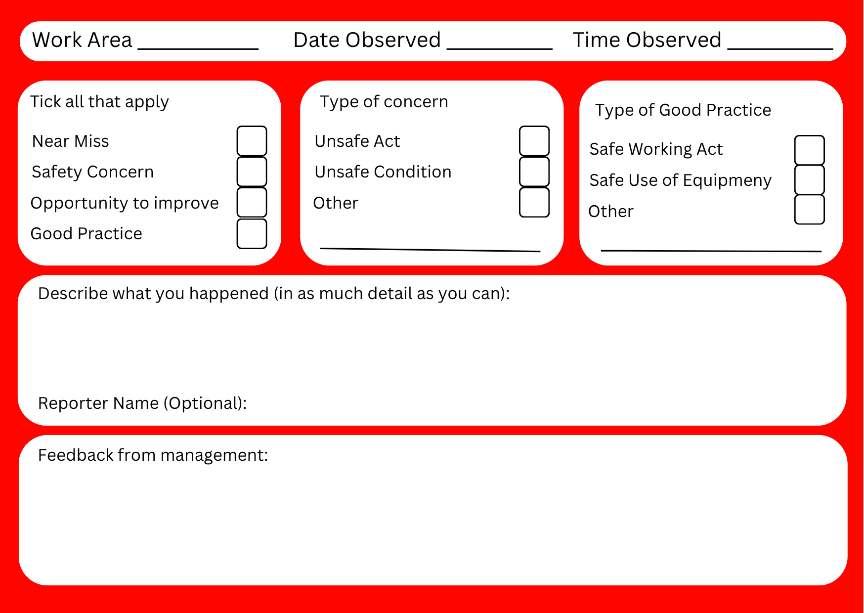 A6 Double Sided Near Miss Cards for reporting of Near Misses, Hazards or good Practices (pack of 50)